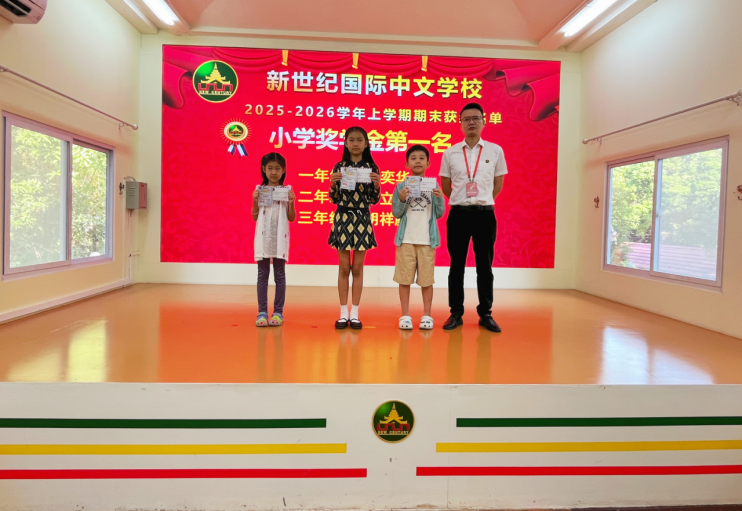 2026年1月31日上午,新世纪国际中文学校仰光杜卡瓦迪校区师生齐聚一堂,举行了2025-2026学年上学期期末颁奖典礼,表彰在本次考试中取得优异成绩的学子。典礼由周小燕老师主持。