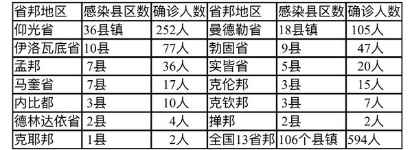 缅甸新冠疫情1月7日一天之内发现新确诊者594人