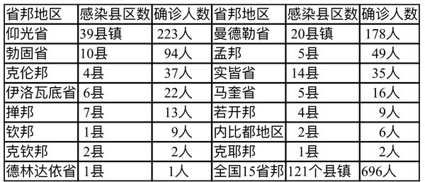 缅甸新冠疫情1月8日一天之内发现新确诊者696人