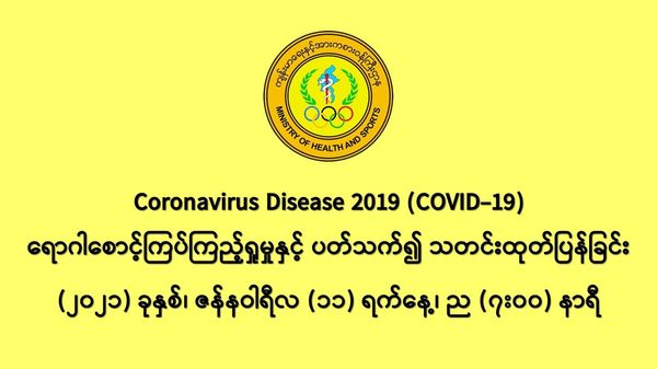缅甸卫生暨体育部1月10日下午7时发出公告,通告缅甸自2020年3月23日发现第一名新冠疫情确诊者以来,一直到现在1月9日共发现疫情确诊者130,604人,这些人来自全缅甸15个省邦地区。其中1月10日这一天发现的 555名确诊者来自14个省邦地区,他们所属的县镇地区如下:
