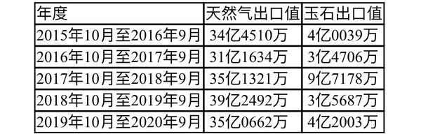 近年来缅甸国家天然气及玉石出口创汇情况