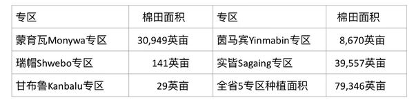 实皆省也不是全省普遍都种植这棉花的,真正种植棉花的主要就是3个专区:蒙育瓦专区、茵马宾专区及实皆专区。这是由省农业局处所获知的数据资料。