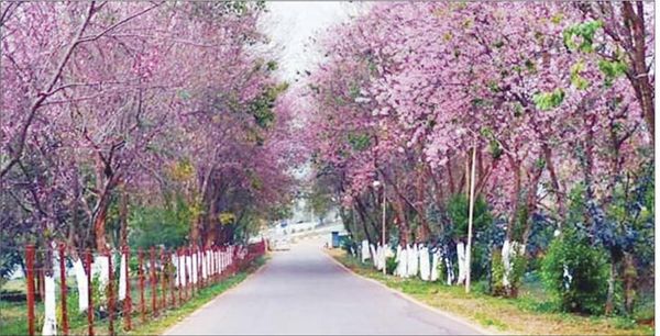 (按:正如曼德勒省的这彬乌伦市被称为樱花都城一样,掸邦南部的东枝市也同样被当地人民称为是樱花城,当地的东枝大学就被称为是“樱花林”——缅语称为Cherrytaw。但东枝城市方面对这樱花保护不力,一些民众在清晨散步时最喜随手摘折这樱花,久而久之这就使樱花树褪色不少。据一些民众之说,樱花的色彩是淡粉红色,不是大红大绿颜色十分鲜艳的花卉。其在树上是显得美丽光彩动人,但已摘取下来后就失色不少,失去观赏价值。所以摘取下来回家欣赏者,大都没有一天的时间就会将之弃之如履,将之丢进垃圾箱里了。所以很多人都评论:既然由树上摘取下来后就没有多少观赏价值,就不应该将之随手摘取。但有的人还是不明白这一点,照样摘折不误,以至此树种不断遭受“无妄之灾”,甚至面临“绝种”危机。)
