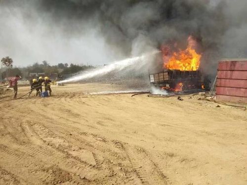 当地时间 1月25日下午1时,马圭省抱镇(PAUK)韦当苗村(Wei taung )一辆原油运输车起火,一车司机不幸身亡。