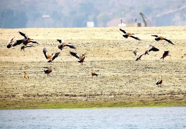 前来过冬的300多只鸳鸯鸟抵达马奎省的伊洛瓦底江江畔