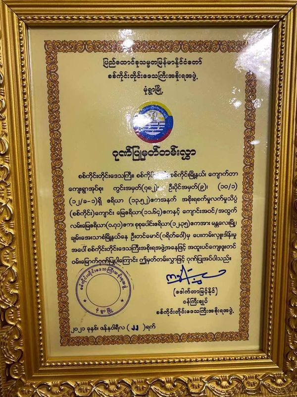 当天,实皆省省长及省市相关领导以及曼德勒云南同乡会理事长蒋恩悌先生、伊洛瓦底英文学校董事长刘光壁先生、曼德勒省工商协会主席吴觉敏先生、副会长俄得麻邸金铺俄三午先生,出席了捐地仪式,实皆省省长代表政府接受了长城集团的捐地,并向李长青先生颁发了荣誉证书。