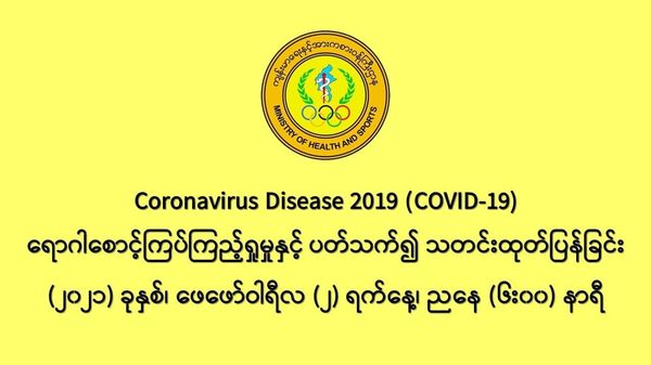 缅甸卫生暨体育部2月1日下午6时发出公告,通告缅甸自2020年3月23日发现第一名新冠疫情确诊者以来,一直到现在1月31日共发现疫情确诊者140,354人,这些人来自全缅甸15个省邦地区。其中2月1日这一天发现的 209名确诊者来自11个省邦地区,他们所属的县镇地区如下: