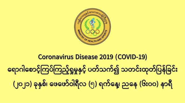 缅甸卫生暨体育部2月5日下午6时发出公告,通告缅甸自2020年3月23日发现第一名新冠疫情确诊者以来,一直到现在2月4日共发现疫情确诊者141,104人,这些人来自全缅甸15个省邦地区。其中2月4日这一天发现的 263名确诊者来自10个省邦地区,他们所属的县镇地区如下: