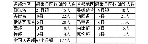 总计177名确诊者来自10个省邦地区的67个县镇区。
