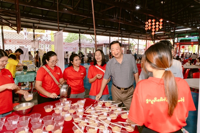 本次布施典礼由缅甸福建同乡总会、福星语言与电脑学苑、缅甸福建青年联谊会、总会所属单位(如太原王氏家族会、惠安会馆、庄氏四美堂、曲江张氏宗亲会等),以及闽侨乡亲们共同参与,提供食物、饮料、矿泉水等布施物资,传递温暖与友爱。同时,福星语言与电脑学苑特设文化展示摊位,以文化为桥传递温暖与友爱,成为现场一道独特的人文风景。逾5000人踊跃参与,充分展现了缅华社会与缅甸各族人民和睦共处、共庆佳节的深厚情谊。