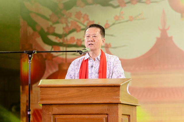 随后,缅甸中华总商会会长林文猛也登台致辞,向在场各族民众送上节日问候。
