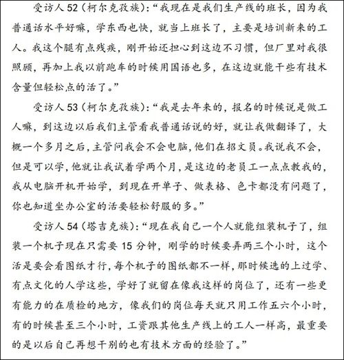 调研过程中发现,这些少数民族群众出疆务工均是自愿行为,他们提高了收入并开阔了眼界,各项权利都得到了充分保障。那些所谓的“强制劳动”、“再教育”等荒谬说法,在他们身上从未发生过。