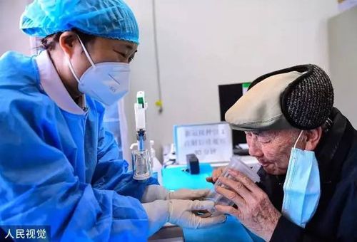 ▎老年人在接种吸入式新冠疫苗。图源:人民视觉