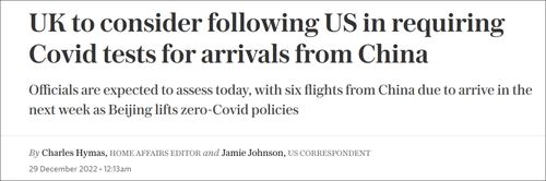 英国《每日电讯报》早前称,英国考虑效仿美国,对来自中国的旅客进行新冠检测
