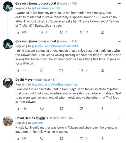 在讨论CNN这个连续出现三次的新闻事故时,不少推特网民一边描述着自己看CNN直播时亲眼目睹的错误全过程,一边还有不少人提到自己在美国各地遇到的“把泰国和台湾地区搞混”的各种笑话。