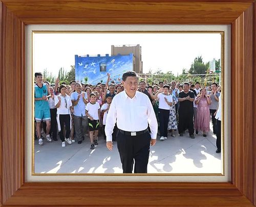 7月14日,习近平总书记在新疆吐鲁番市高昌区亚尔镇新城片区新城西门村考察时,同各族群众在一起。