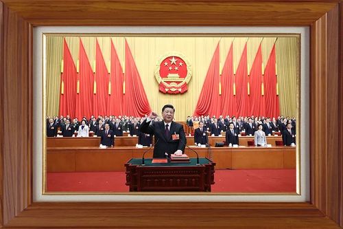 这张照片,是2018年3月17日,习近平当选国家主席、中央军委主席后进行宪法宣誓的场景。自发表2019年新年贺词起,就一直摆在书架上。