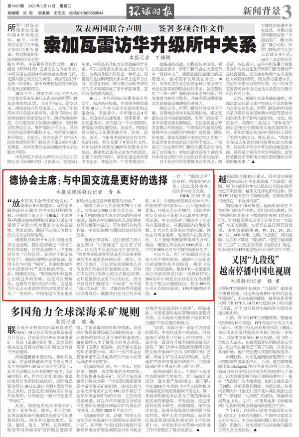 “放弃贸易不会带来积极变化。”德新社9日报道称,虽然德国联邦政府正减少对中国原材料的依赖,但德国工商大会(DIHK)主席彼得·阿德里安在柏林接受德新社采访时强调了中国市场对德国企业的重要性。他也谈到,德国不应该以传教士的方式来宣传价值观。