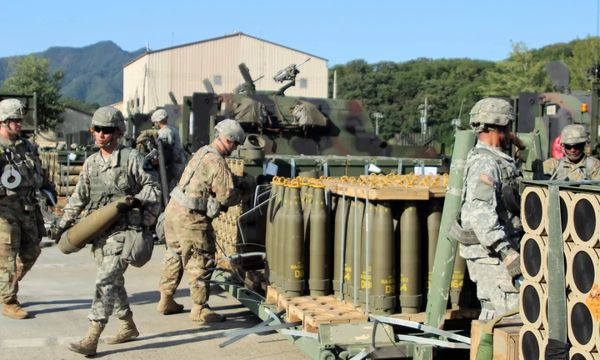2016年9月,美国陆军士兵在演习中拿出集束弹药。图片来源:路透社