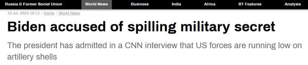 RT报道称,与此同时,拜登也透露了一个有关美国军队的“潜在敏感事实”——美国155毫米口径炮弹的弹药不足。