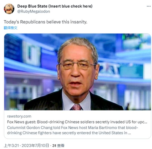 也有网友评论说:“今天共和党人相信这种精神病。”