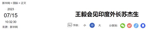 王毅会见印度外长苏杰生当地时间7月14日,中央外办主任王毅在雅加达应约会见印度外长苏杰生。……