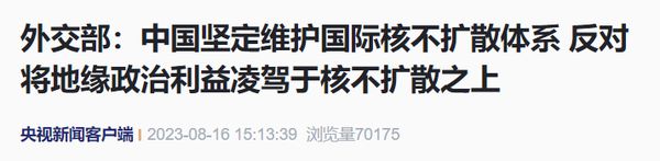 外交部:中国坚定维护国际核不扩散体系,反对将地缘政治利益凌驾于核不扩散之上