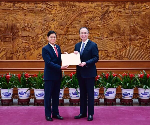 外交部部长助理兼礼宾司司长洪磊接受缅甸新任驻华大使递交国书副本