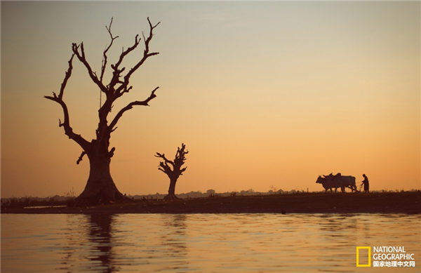 或天空作幕,太阳庄重而缓缓的升起,农夫们缓缓而庄重的来回耕种自己的田地。 或乌本桥做底,人们皮影戏一般在桥面鱼贯穿梭,太阳仿佛光影大师,让所有人为之惊叹不已。