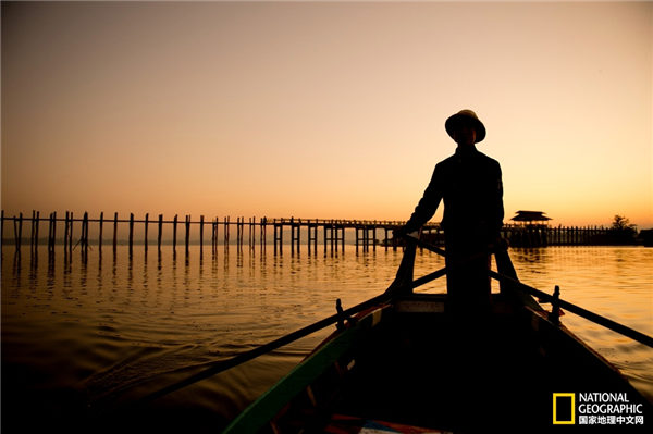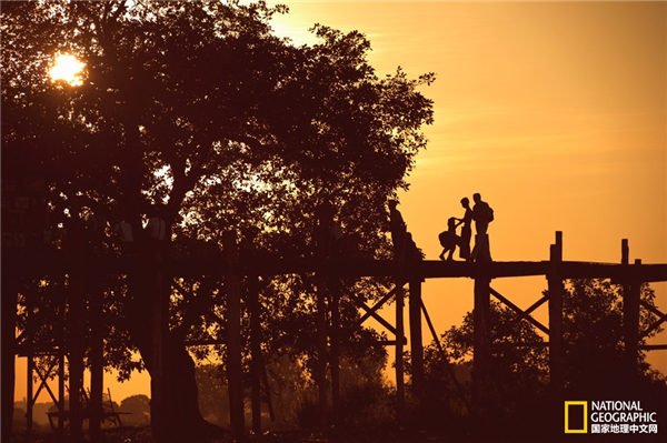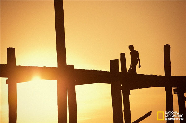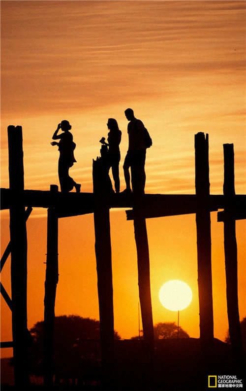 从江上看乌本桥的夕阳,是所有缅甸图景中最醉人的一幕。