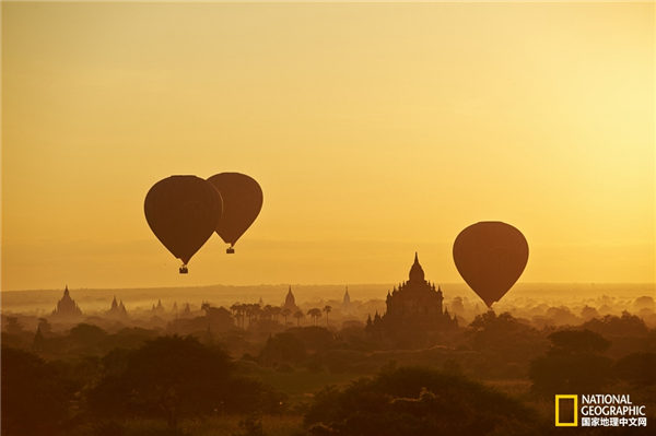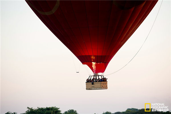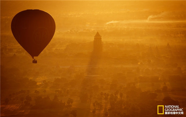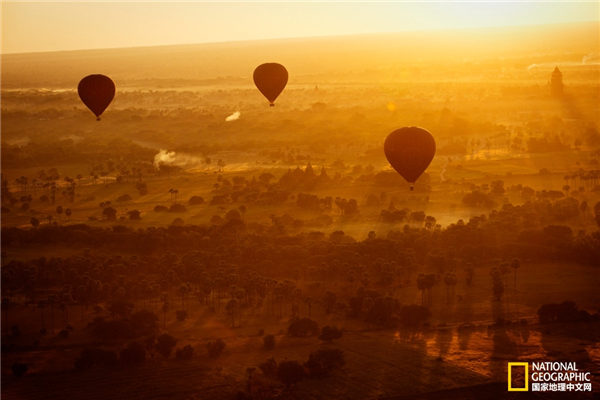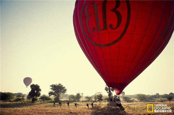 气球随晨风动,擦过树枝顶端。刚和地面的人挥手互至早安,气球又已经扶摇直上,地面的景象令人晕厥。篮中人们安安静静,只有火焰喷射的声音,蒲甘上空飘荡着悠远的唱诗声,壮阔而厚重的场景,在面前徐徐展开。