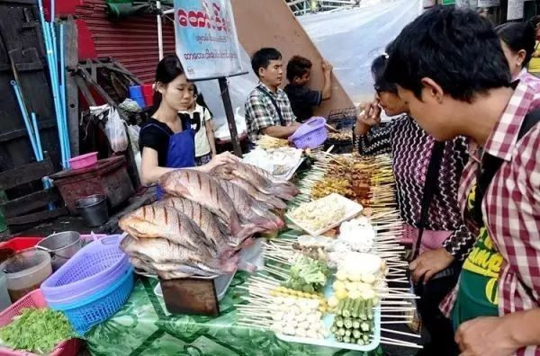 在缅甸仰光的海边,又独具特色的中式“麻辣烫”很受欢迎。