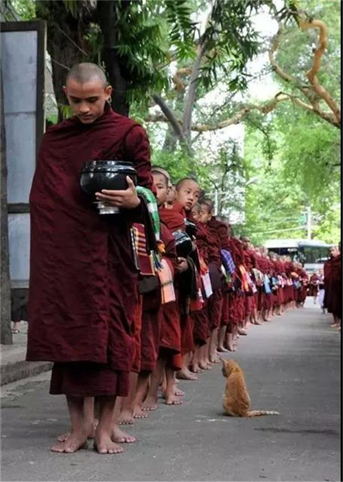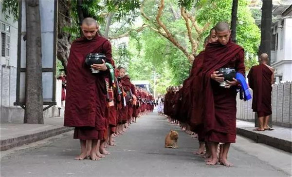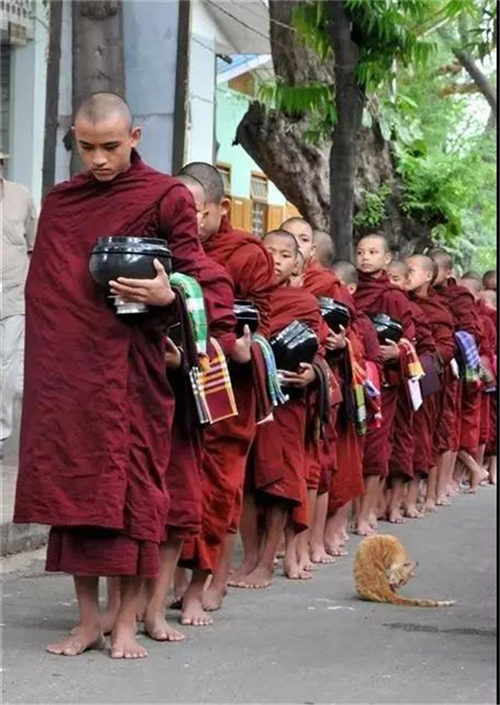 而几乎每一个缅甸男子,都有至少一次多则数次出家做和尚的经历:在寺庙里学习、修行之外,每天化缘接受布施也是他们在和尚生活中必不可少的一项经历。