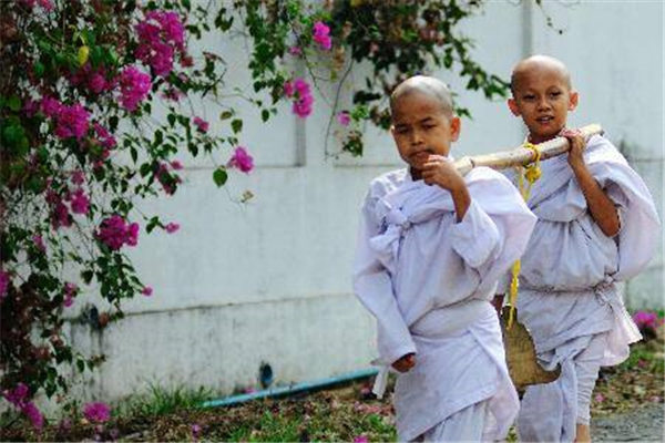 缅甸是有很多僧人的,在这里,每天都可以看到一个很有趣的想象。一大早就可以看见不穿鞋子的小尼姑、小和尚们,手里拿着他们的化缘器具,在各个角落三五成群的化缘,这个景象看起来是很可爱的。我看到很多僧人都是很廋的,就问了一下当地人,他们为什么都这么瘦,他们当地人很和善的给我解释了,说他们出家佛教的,是有一个非常严厉的规矩的,过了早上10点之后就不能吃饭了,一天都是靠水来维持。不得不说听到这个我还是很吃惊的,感觉有点残忍,但是这是他们的规则,他们遵守也是正常的。