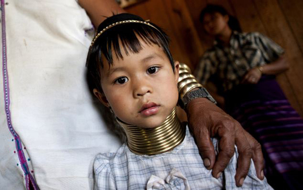 克扬族(Kayan)生活在缅甸东部克耶邦,这里的妇女以长颈为美。