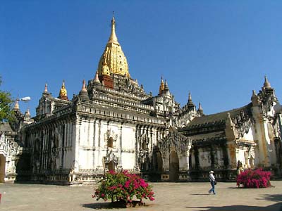 围绕阿南达塔的阿南达寺是蒲甘最美的佛教建筑,它代表着蒲甘王朝的最高建造水准。在它周围有长长的走廊,每条走廊都通到中间的院子,院子里开满鲜花。在淡黄色外墙上,有数千尊大小不一的佛像和彩陶浮雕。