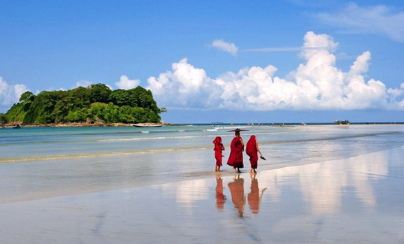 从仰光出发,开车五小时即可到达威桑海滩。威桑海滩是隐蔽天堂的化身。当许多人宁愿在纳帕里海滩沐日光浴的时候,那些在佛教寺庙外想寻求安宁与静谧的游客可来威桑海滩,这里是一个银色的海滩。被若开邦山区郁郁葱葱的热带森林包围着,这处隐蔽的海滩能够带你进一步体验天堂。