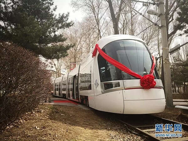 ▲4月16日,中车长客为以色列研制的轻轨列车在长春下线。(新华社)