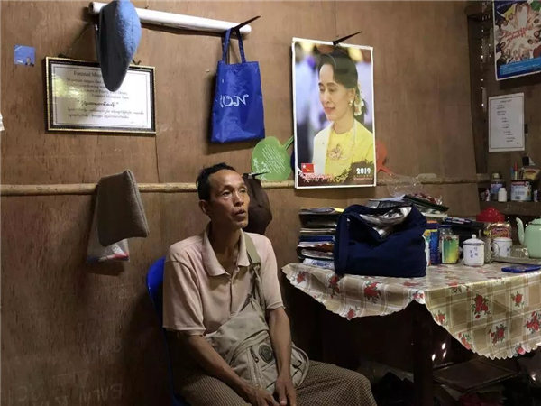 村中的晚辈刚从仰光旅游回来,带给吴橄一本昂山素季2019年的悬挂月历,封面上的她眉目低垂,身着如缅栀花。吴橄把日历挂在办公室书桌前,给斑驳杂乱的房屋带来一抹生机。(责编/苗硕)