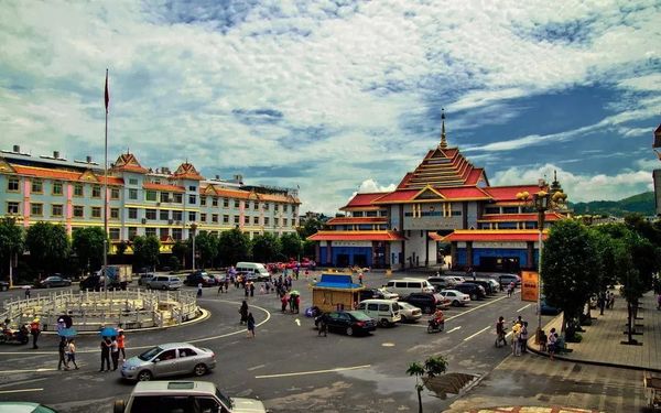 从掸邦北部中心城市腊戍出发,穿过人迹罕至的深山后,眼前突然出现的一片高楼林立的街区就是缅甸的最大边贸区——木姐。它与瑞丽毗邻,其名字就是“繁华热闹的城镇”之意,在中缅两国贸易中扮演着举足轻重的角色,被称为“缅甸的深圳”。