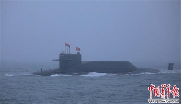 4月23日,参加海上阅兵的中国海军战略核潜艇。中国青年报·中青在线记者 王达/摄