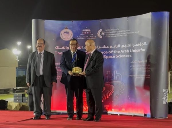 第14届阿拉伯天文与空间科学大会上,阿拉伯联盟天文和空间科学委员会向深空探测实验室颁发阿拉伯天文与空间科学大会特殊贡献奖 图源:深空探测实验室微信公众号