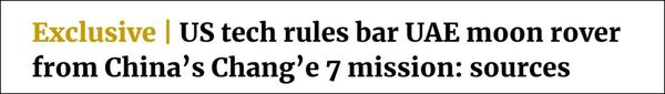 然而,到了今年3月,《南华早报》援引两名消息人士的话说,美国的技术转让限制导致阿联酋参与中国登月任务的计划搁浅。这些消息人士提到了美国1976年颁布的《国际武器贸易条例》,称该条例禁止用中国火箭发射任何美国制造的部件,哪怕是最常见的部件。