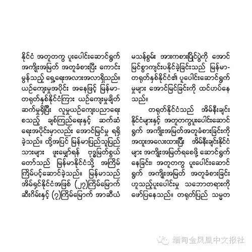 中国有句名言,“亲望亲好,邻望邻好”。我们希望看到一个和平、稳定、发展和繁荣的缅甸,希望看到一个友好的缅甸。夯实民意是互利合作的社会基础,我们将结合“孟中印缅经济走廊”和“一带一路”建设等合作项目,继续加强与缅甸各界沟通交流,丰富民间交往领域和内涵,增信释疑,促进两国人民各领域友好互利合作。我们相信中缅友好的深厚历史根基、政治基础和民意基础会得到进一步加强,中缅人民将更加深刻认识到,中缅各领域合作符合两国利益,为两国人民带来了实惠。“道路是曲折的,前途是光明的。”我们愿意同缅甸朋友一道,积极应对挑战,充分利用机遇,不断拓展两国全面战略合作伙伴关系的内涵。我相信,只要中缅双方坚定信心,继续保持平等、互信、合作的优良传统,两国合作必将迎来更加灿烂的明天。