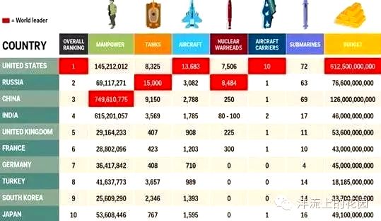 今年公布的全球军力指数的全球战力排名(GFP)又出炉了,这一衡量全球主要国家军力的重要数据,多年来前几名都雷打不动——美国、俄罗斯和中国继续在世界大国军力中稳居前三。