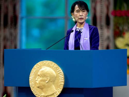 幸亏挪威议会方面却表示不可能收回这和平奖(当年诺贝尔先生立下其遗书时,物理、化学等科学方面的奖项指定由瑞典科学院负责颁发,和平奖由挪威议会选出五人委员会裁定颁发),因为当年诺贝尔先生的遗嘱中,并没有回收奖项(或奖金)这么一项规定。话虽如此说,但想要兴风作浪,想要给昂山素季施加压力的人还是乐此不疲,在世界各地上串下跳地活动着。