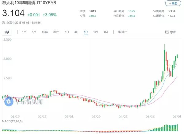 发达国家方面:意大利国债收益率不断升高,其债务泡沫破裂的风险急剧扩大。截至8日,意大利利国债收益率累计攀升37个基点,上涨至3.104%高位。如果意大利债务泡沫破裂,其占据欧元区23%的债务总量,足以引爆整个欧盟。