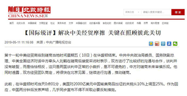 《国际锐评:解决中美经贸摩擦 关键在照顾彼此关切》内容如下: