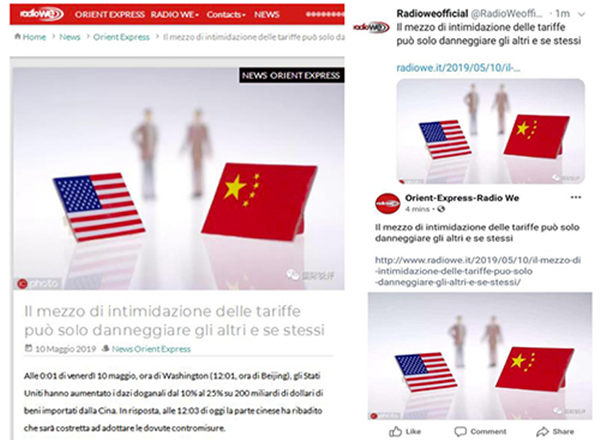 意大利Radio We电台网站(facebook账号、twitter账号)5月10日转发
