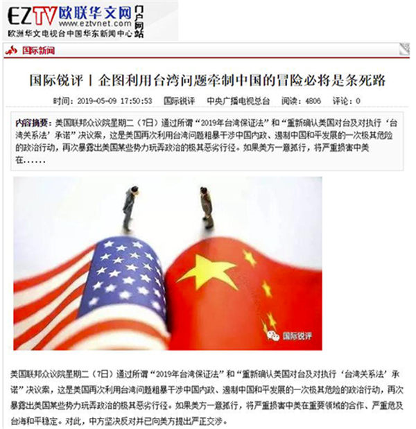 《国际锐评:企图利用台湾问题牵制中国的冒险必将是条死路》内容如下: